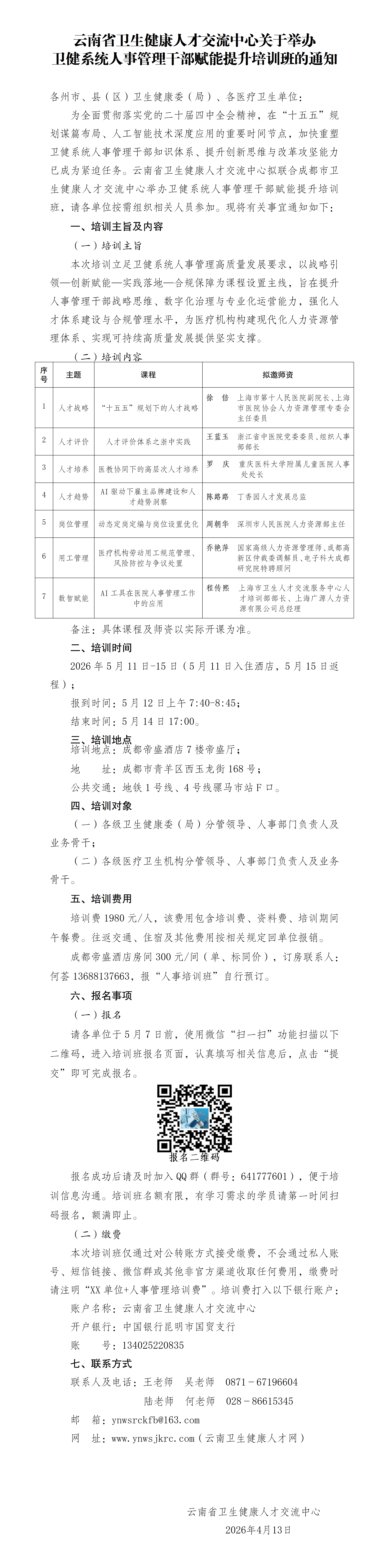 云南省卫生健康人才交流中心关于举办卫健系统人事管理干部赋能提升培训班的通知
