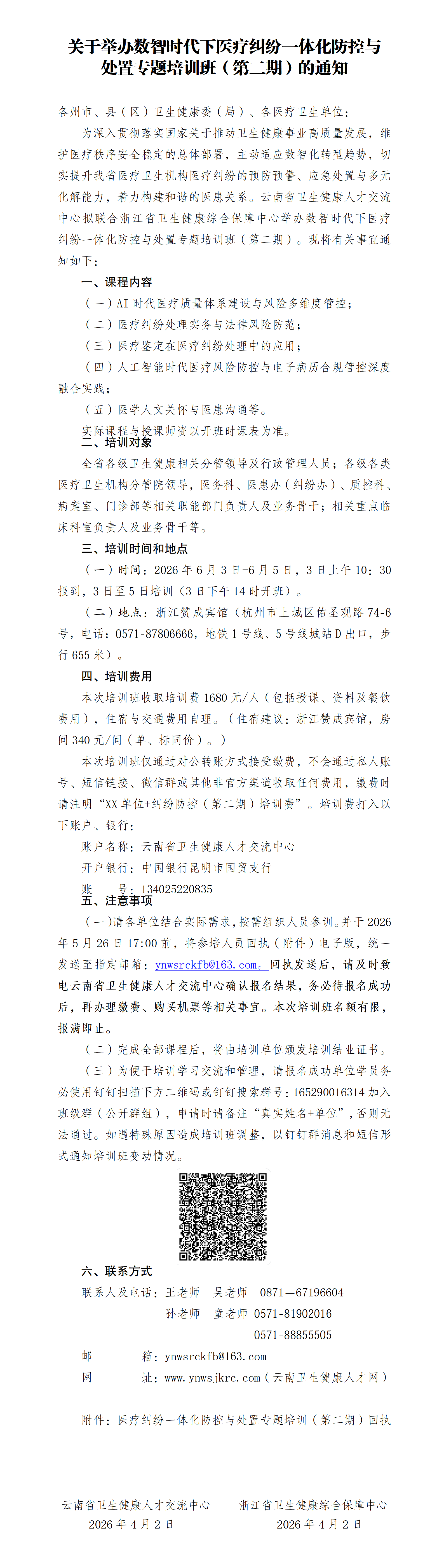 关于举办数智时代下医疗纠纷一体化防控与处置专题培训班(第二期)的通知