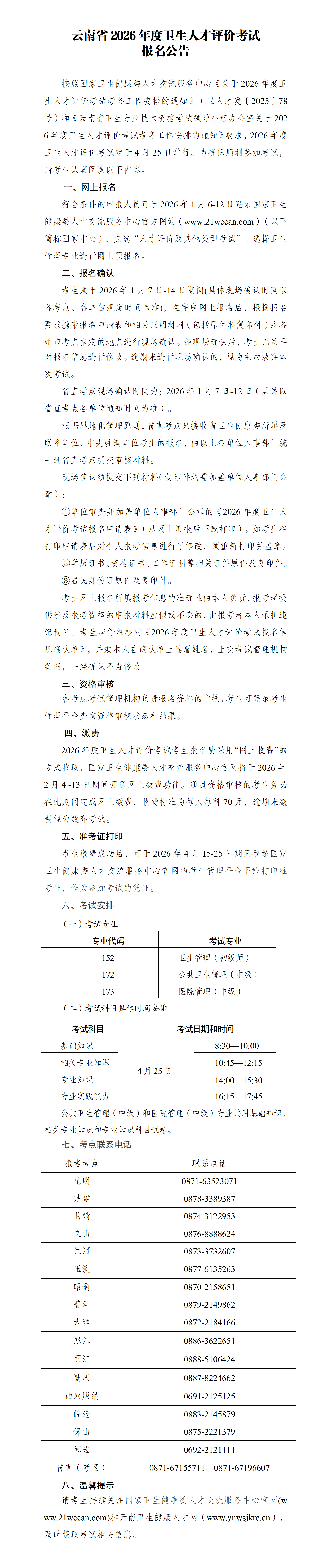 云南省2026年度卫生人才评价考试报名公告